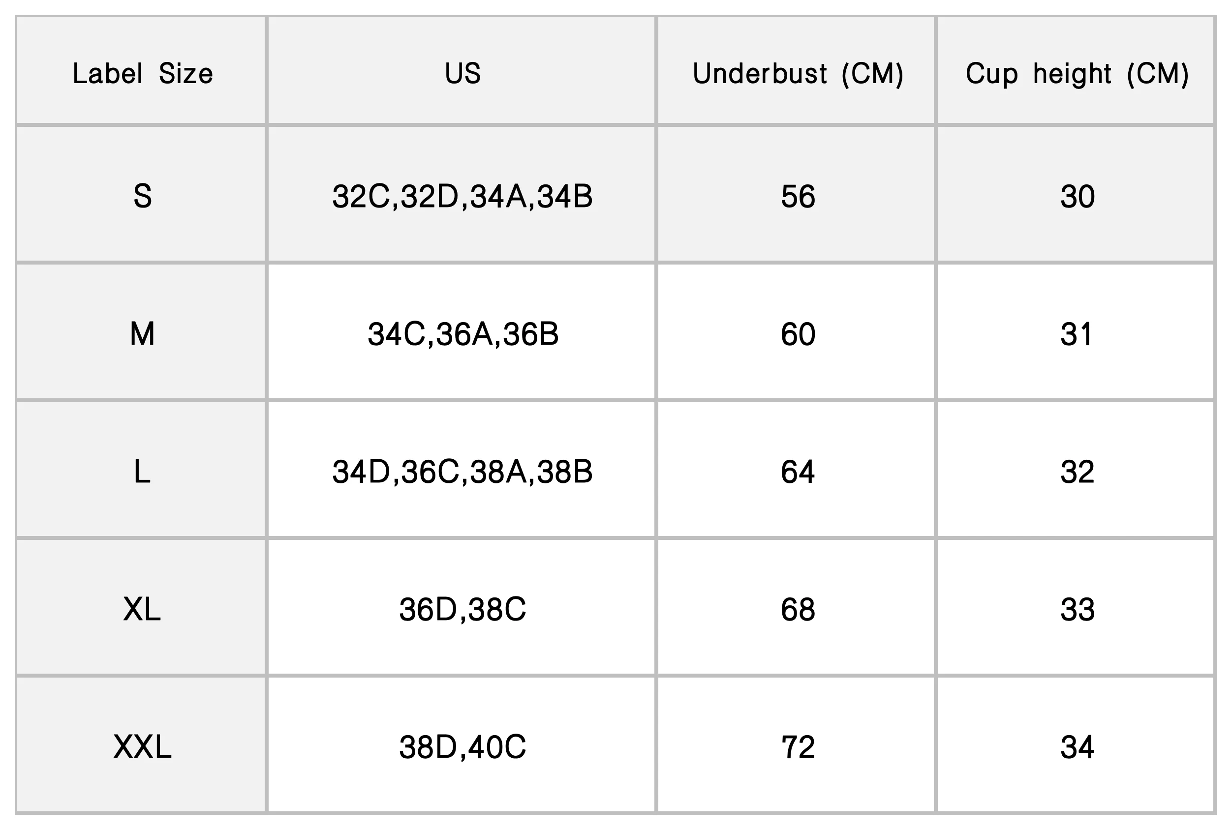 S, M, L, XL, XXL